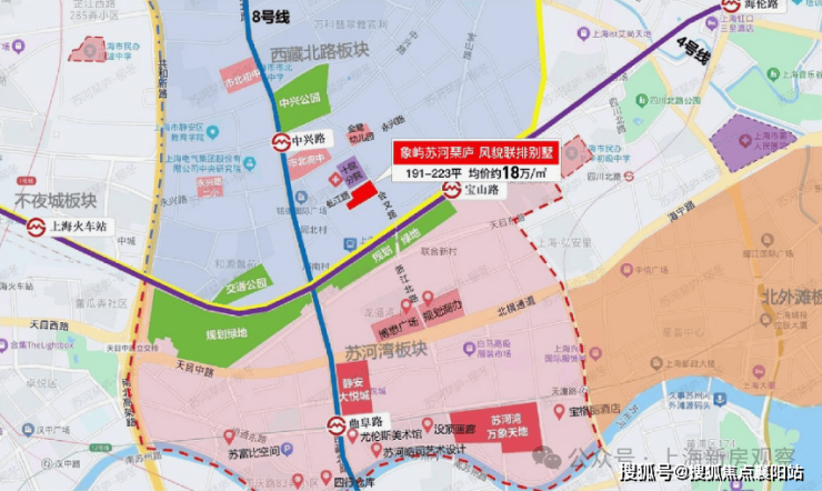 交通配套: 距离8号线中兴路站直线约400米,距离3/4号线宝山路站直线约300米。驾车500m直通南北高架,纵向穿越上海市区,转内环、中环、外环以及延安路高架