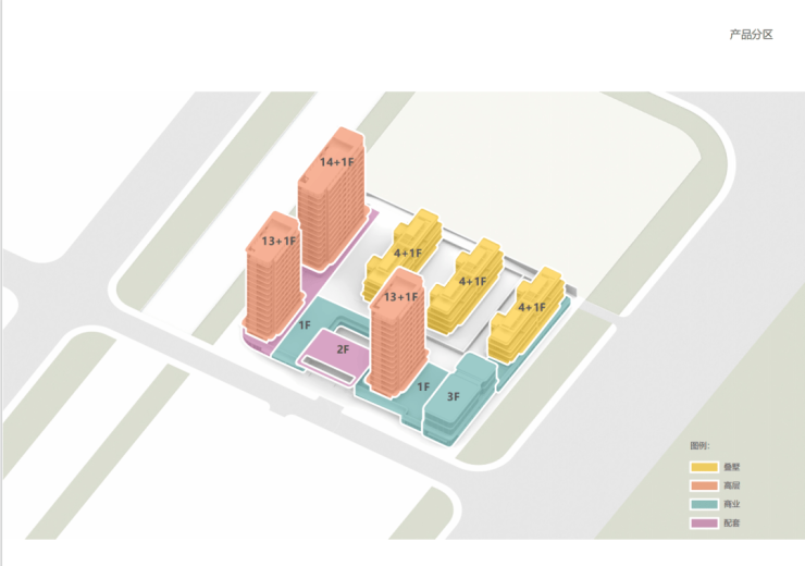 其中1#、2#、3#为3层叠加别墅,还有3幢13-14层高层住宅,高层产品首层架空。