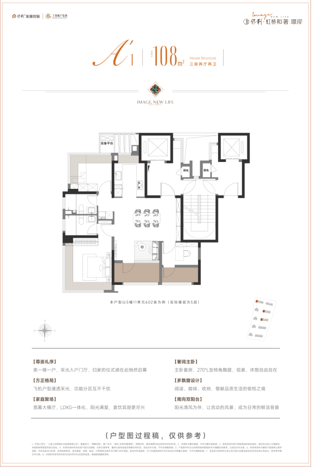 一梯一户、全明梯厅、双阳台、约 270°转角飘窗 ,几乎找不到短板,三口之家住得宽松,三代同堂也不会局促。