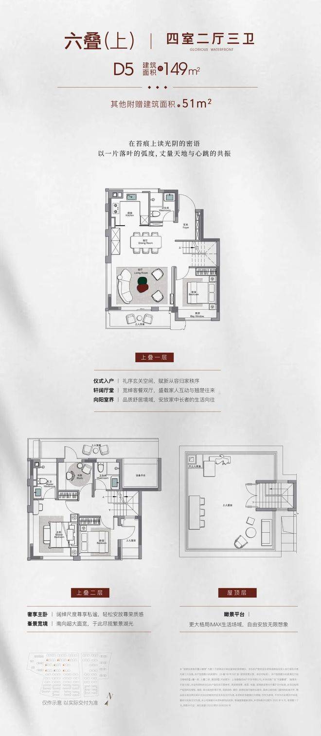该地块将推出建面约123㎡洋房(约196套)142-171㎡叠墅(6-7F叠墅约251套、4F叠墅约128套)以及建面约182-230㎡联排合院(约82套)!