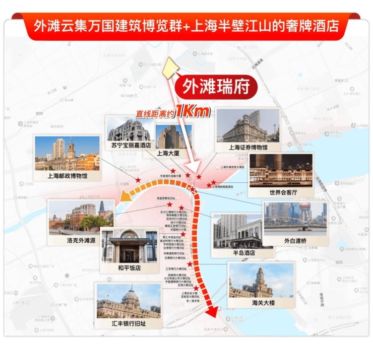 【外滩瑞府】地处上海内环最“根正苗红” 的位置 ——外滩1 公里生活圈。如果说内环是上海豪宅的 “第一梯队”,那外滩板块就是 “内环中的内环”