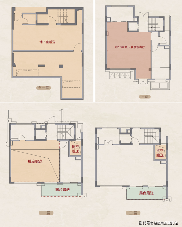 205-225㎡联排产品,累计附赠面积约238㎡,实际得房率远超216%!