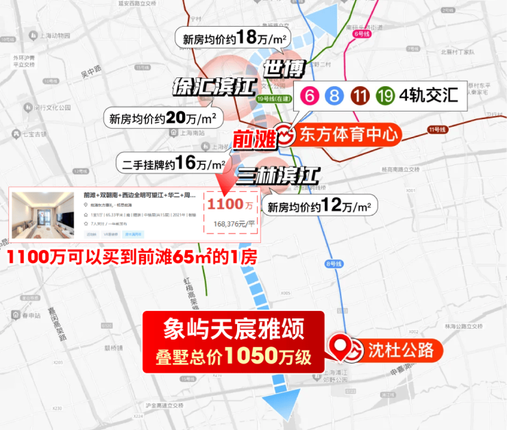 对比前滩核心:前滩核心区精装均价约 9-12 万 /㎡,项目以一半左右预算,即可享受 6 站地铁的通勤便利与相近生活配套,资产性价比与居住舒适度双优。