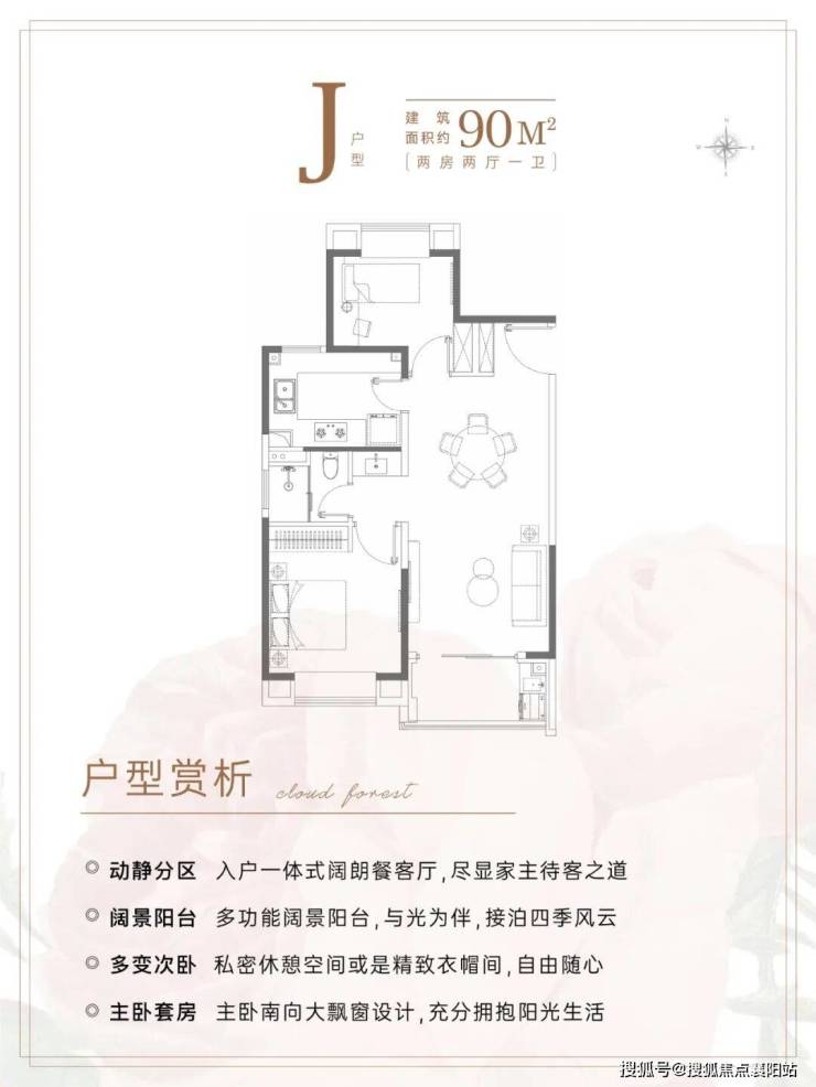 建面约 90㎡两房两厅一卫 :入门改善首选,总价约 860 万起,三开间朝南、双飘窗、餐客厅一体,适配新婚家庭、三口之家,性价比突出。