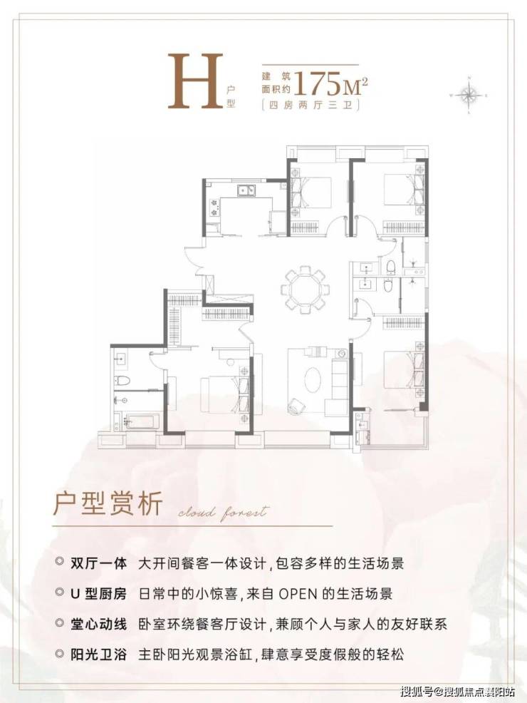 格局设计 :边厅设计,270° 转角阳台,南北通透,全明格局,动静分区极致优化,公共活动区与休息区完全分离,居住私密性极强;四房设计,双套房配置,适配家族式居住。
