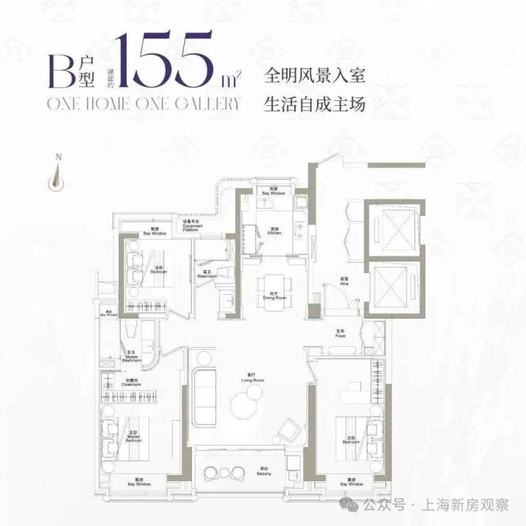 建面约155㎡3房样板间展示