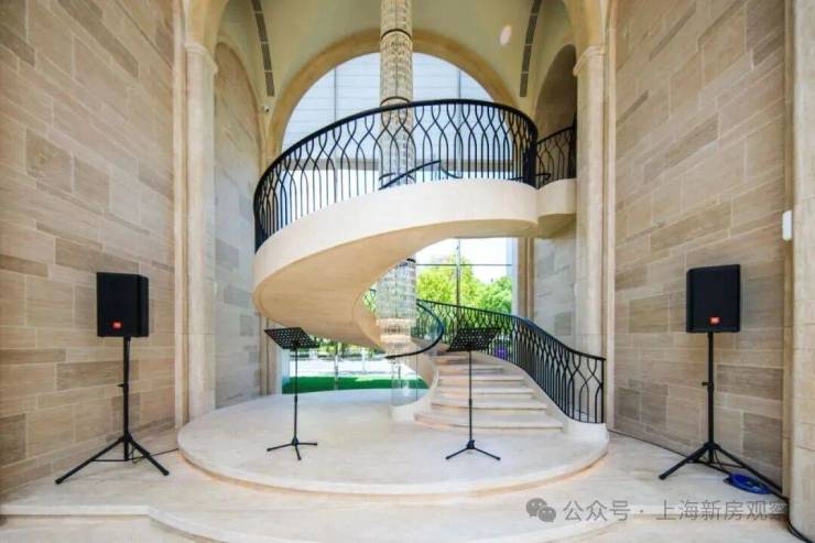 社区主入口更是兼具豪华酒店与海派元素设计风格, 挑高约6米的入户大堂、水系景观与艺术家共创作品 交相辉映,奢华感和高级感拉满!