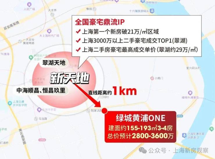 最新消息!收藏黄浦新天地!老西门「绿城·黄浦ONE」持续热销中!少量建面约155-193㎡3-4房;均价17.2万/m²!总价2300-3400万;售楼处线上火热预约中!一步新天地 非标高定奢宅;这将会是一个“以低门槛,撬动上海恒贵地段”的绝佳机遇!