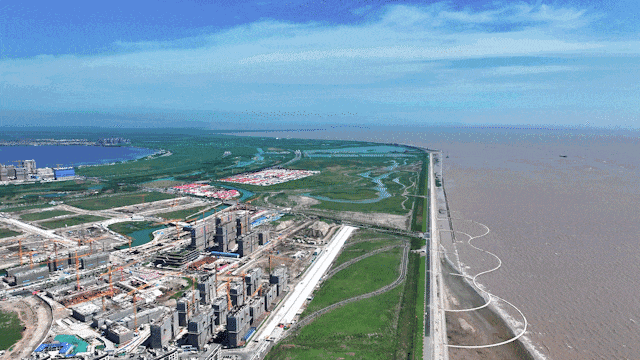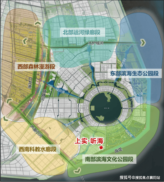 首先谈及上实听海,最无可替代、全临港乃至全上海都极度稀缺的核心优势,便是真正一线亲海的天赋地理位置,零距离拥抱东海海岸,推窗揽海,出门踏浪。项目精准落位临港新片区 103 国际科创湾核心,美人蕉路近南港大道,直线距离东海海岸线仅三百米左右,这是临港主城范围内,极少数真正占据海岸首排、无遮挡直面大海的住宅社区,完全区别于市面上所有打着海景房旗号、实则远海的楼盘。没有密集建筑阻隔,没有道路丛林遮挡,社区大部分楼栋从低楼层到高楼层,都能拥有无界海景视野,清晨推开窗,便能望见蔚蓝海面与辽阔天际相接,海风裹挟着清新的海洋气息漫入室内,吹散城市生活积攒的疲惫;傍晚时分,落日熔金铺满海面,波光粼粼的海面搭配漫天橘色晚霞,每日都是独属于海岸的限定风景。步行短短数分钟,就能直达东海滨海步道,沿着海岸线漫步,看潮起潮落,看鸥鸟翩飞,看沙滩潮间带的自然野趣,闲暇时分散步、慢跑、亲子游玩、静享独处时光,日常的休闲生活从此拥有了独一无二的自然底色。项目毗邻有着天空之境美誉的南汇原生态沙滩,周边滨海公园环伺,北侧紧邻约十四点三公顷莫比乌斯公园,周边还有滴水湖公园、鸥鹭齐飞湖等多处生态绿地,形成双公园一海岸线的绝佳生态格局,大海、湖泊、森林、公园多重自然景观环绕,居于此,日常被鲜氧与美景包裹,远离城市雾霾与喧嚣,生活始终浸润在自然温柔之中。