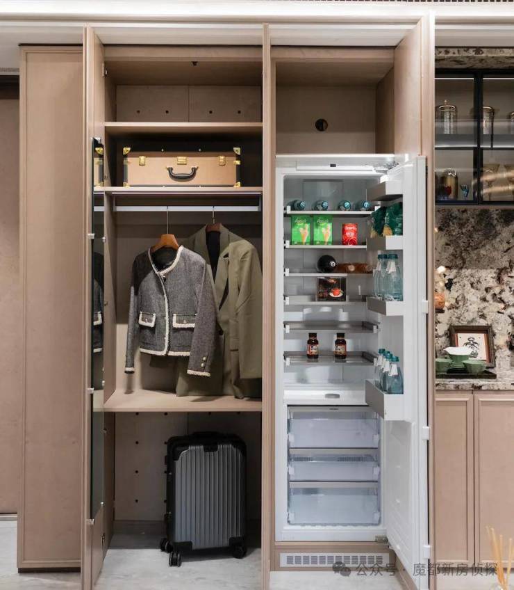 S墙嵌入双开门冰箱,一下子解放了餐厨空间。