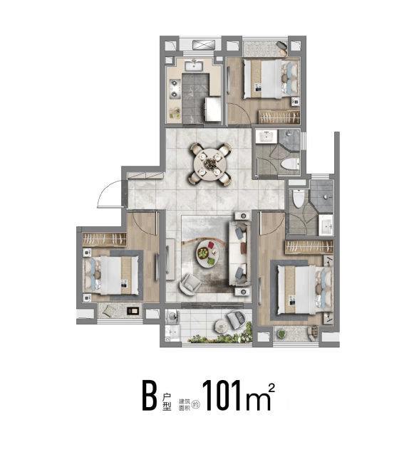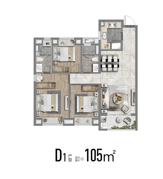 正三房设计 , 无论是98㎡精奢三房,还是113㎡舒适性三房,空间的尺度感十足,坚持不缩水。从主卧、到老人房、儿童房,每个人都有自己独立的空间。