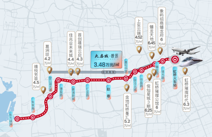 今年7月拍出的青浦西虹桥地块以溢价成交,最终房地联动价格高达62000元/平米。而大名城映辰备案价仅3.48万/㎡,堪称神仙级的“捡漏”神盘。