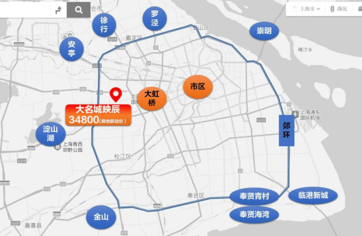 将视野拉大,在青浦,向东赵巷皆 5万+/㎡ ,向西青浦新城、淀山湖大道也都 4.5万+/㎡ 。