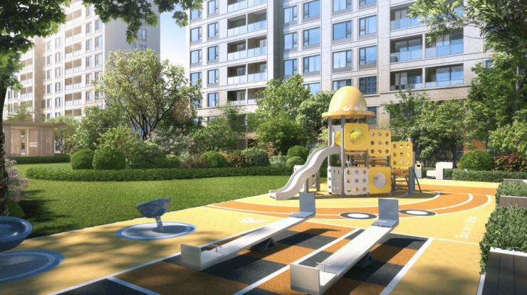 在社区空间的打造上, 约6000㎡超大中心花园 ,包含阳光草坪、景观会客厅、儿童活动区、成人健身区等环绕布置,尽享绿意生活,构筑三代人的幸福时光。