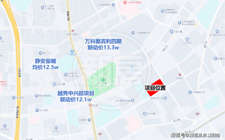 该地块东至公兴路,南至永兴路,西至静安区闸北第三中心小学,北至象山小区;该板块是静安区新房的主力供应区域, 地块周边待上市新盘有越秀中兴路项目(联动价12.1w)、静安玺樾12.5w、雅宾利四期(联动价13.3w)等项目。