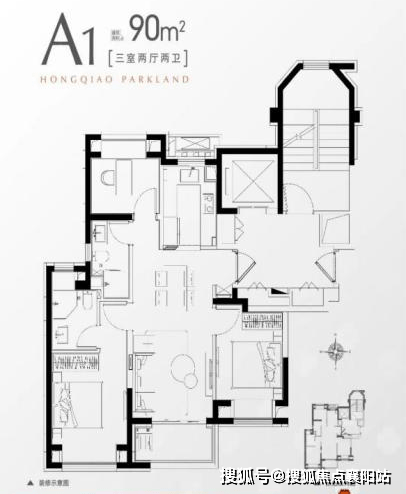 建面约90㎡的三房两厅两卫 :这是一个让人一眼心动的户型。在别的楼盘, 建面约 90㎡做三房两厅一卫可能空间已很极限。 但 华发做到了双卫设计 , 完美解决了早高峰的抢厕尴尬, 三开间朝南、飞机户型、南北通透,再加上U型厨房和主卧套房 ,这简直是年轻夫妻一步到位的“梦中情房”。