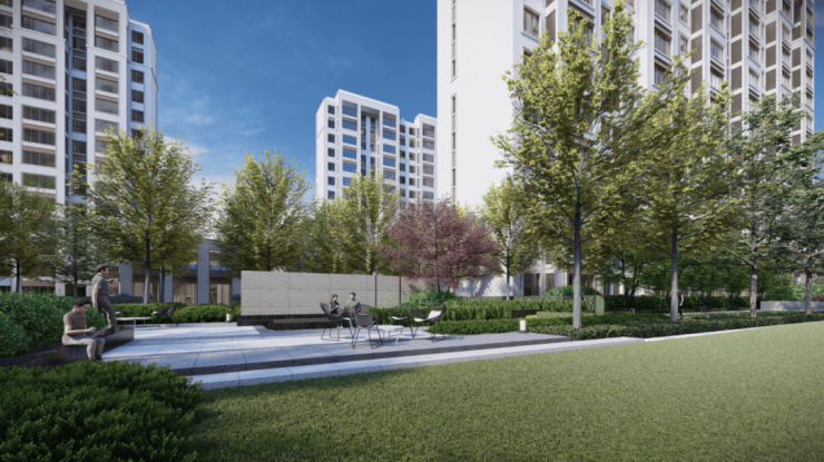 建筑 :现代海派风格,干挂石材 + 真石漆 + 深咖色铝板外立面,简约大气、历久弥新,无连廊设计,得房率高达 78%-82%,居住实用性更强。