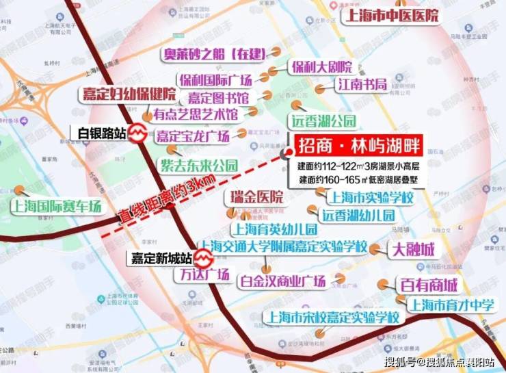 11 号线(已通车):距嘉定新城站约 1.7 公里、白银路站约 2.1 公里,7 站直达徐家汇、10 站到前滩,快速换乘 2/9/10 号线,通达全城。