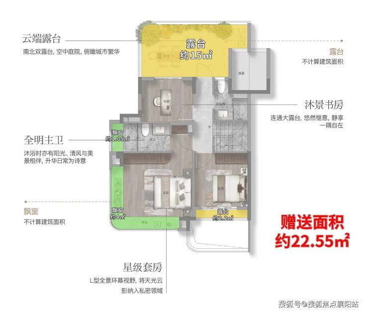 上叠:拥享星空露台,可打造空中花园、休闲茶座,夜晚仰望星空,白天俯瞰湿地与社区美景,浪漫与惬意兼具;顶层视野无遮挡,采光通风效果最佳,静谧私密,是追求极致居住体验的优选。