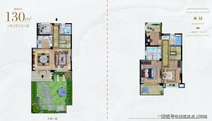 建面约 130㎡ 四房两厅三卫(下叠・终极改善)