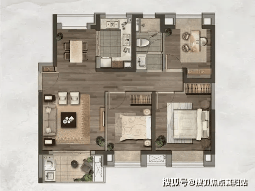 空间配置 :全屋高品质实木复合地板,环保乳胶漆墙面,隔音隔热双层中空 Low-E 玻璃,入户智能门锁,兼顾美观、耐用与实用性。