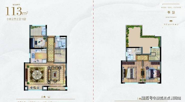 上叠产品,建面约 113㎡,双层空间设计,动静完全分区。一层餐客一体、厨房、长辈房,连接观景露台;二层双卧套房设计,主卧尊享独立卫浴与衣帽间,私密性强。附赠星空露台与阁楼,可改造为阳光房、储藏室、休闲区,居住舒适度拉满。总价 300-350 万,适配三口之家、二胎家庭的改善需求。