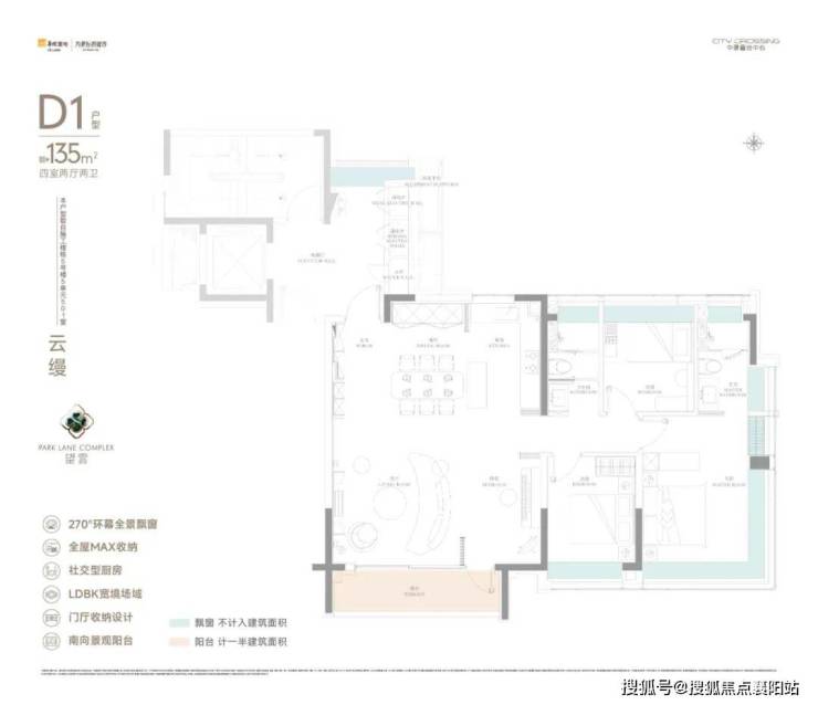 核心优势 :四开间朝南、6.8 米横厅、南北双阳台、动静分区