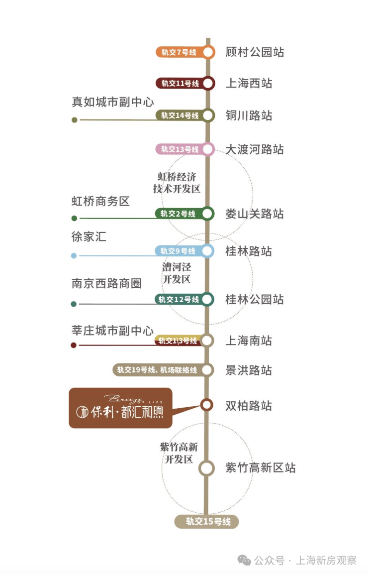 1、正地铁房+产业金线,通勤置业双优: 项目直线距离约500米就是15号线双柏路站,通勤便捷度拉满。