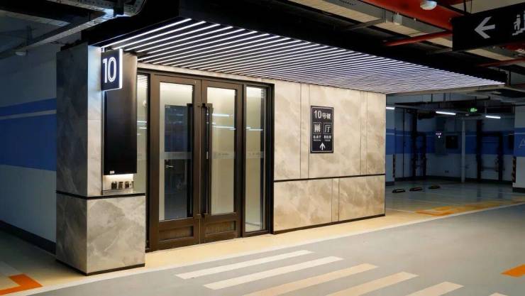 归家体验:全人车分流,地面无车辆,老人小孩活动更安全;地下车库明亮,配备新能源充电桩;入户大堂简约大气,人脸识别入户