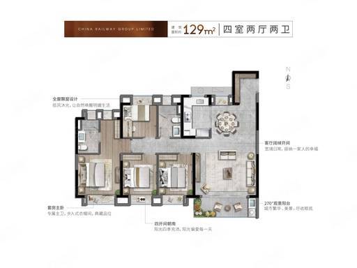 129㎡四房两厅两卫(总价 380-420 万)