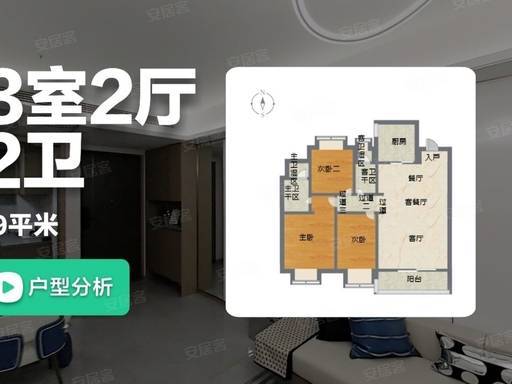 入门爆款, 三开间朝南、U 型厨房、双联阳台 ,全明通透。双卫设计、主卧套房,小面积大功能,刚需首置首选,低总价扎根上海。