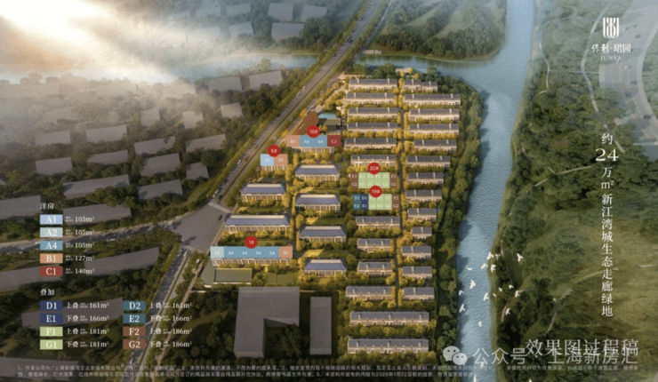 项目规划了9栋6层洋房、9栋4层叠墅、18栋3层滨水合院。打造了稀缺的低密产品。