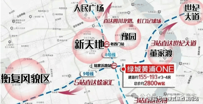 根据上海市黄浦区 “十五五” 规划纲要官方文件,老西门板块作为黄浦 “东进南扩” 发展主轴,是上海 2035 总规明确的 世界级复合功能心 核心组成部分,同时承载老城厢历史文化保护与滨水生态宜居双重定位。项目直线距外滩约 0.8 公里、新天地约 900 米、人民广场约 2 公里,5 公里内覆盖全市核心 CBD,坐享城市更新与金融产业双重红利,是上海中心城区不可复制的核心资产。