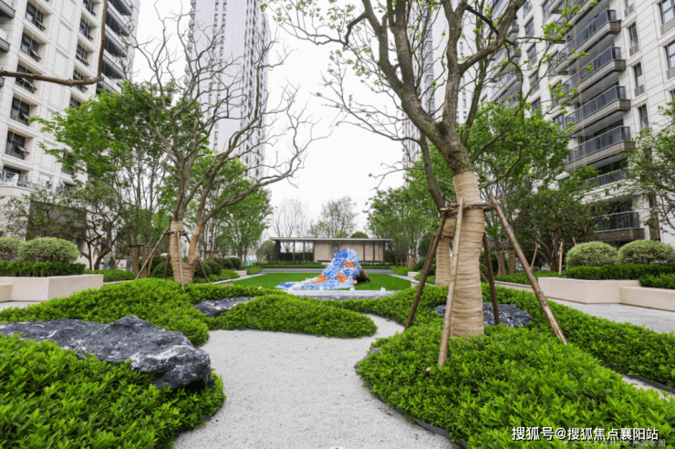 社区以 “垂直森林” 为核心理念,获绿色建筑三星级认证与 LEED-ND 金级预认证,外立面采用石材 + 铝板 + 玻璃的现代海派立面,立面绿化覆盖率超 30%,成本较普通真石漆高出 30%。内部打造 **“四轴九园” 森林景观体系 **,融合约 2000㎡中央雨水花园与立体绿化 “森林走廊”,形成 “一轴生态公共轴、一轴生活礼遇轴、两轴林荫生活轴” 的景观脉络,搭配全冠成熟乔木、林荫步道、水系景观,四季景致分明,春有百花、夏有浓荫、秋有斑斓、冬有常青,每一步都有自然绿意。