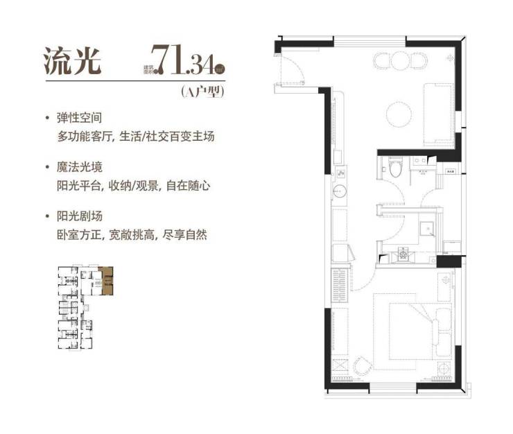 A|流光|建面约71.34㎡户型图如下: