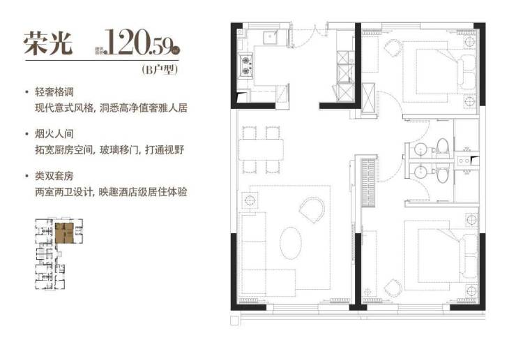 B|荣光 建面120.59m² 两室两厅一厨两卫