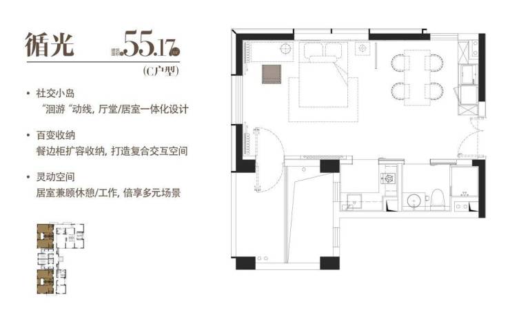 C|循光|建面约55.17㎡户型图如下: