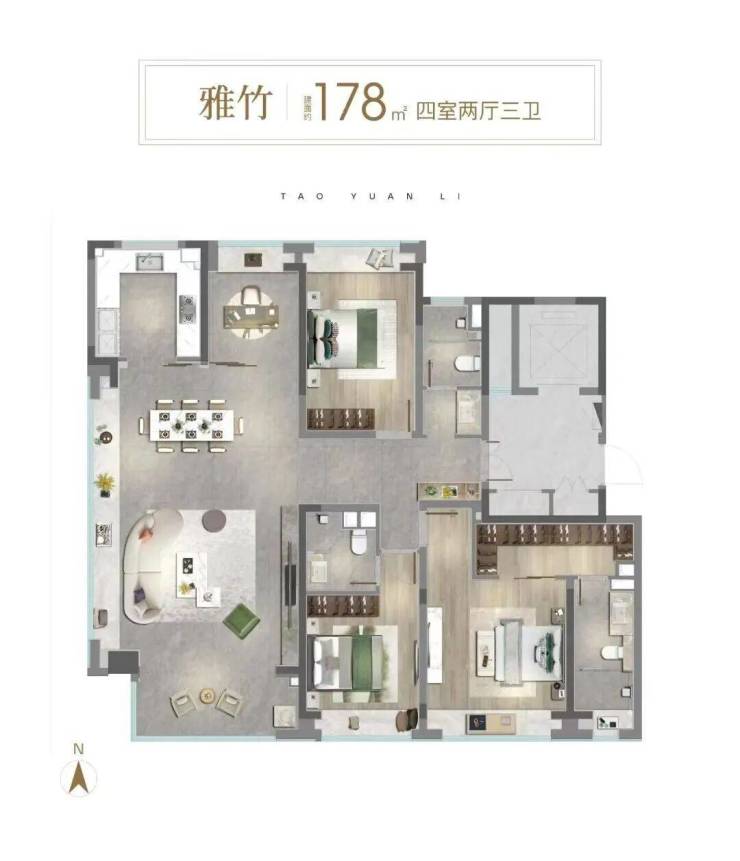 106㎡三房 :经典三开间朝南,动静分区,南向面宽约10米,得房率约78%。78%的得房率据说做到了高于行业常规水准。一套106㎡的3房相比常规得房率,可以多出大约8㎡的居住空间。