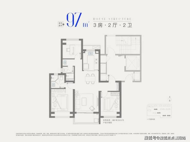 (三)建面约 97㎡三房两厅两卫 —— 进阶改善之选