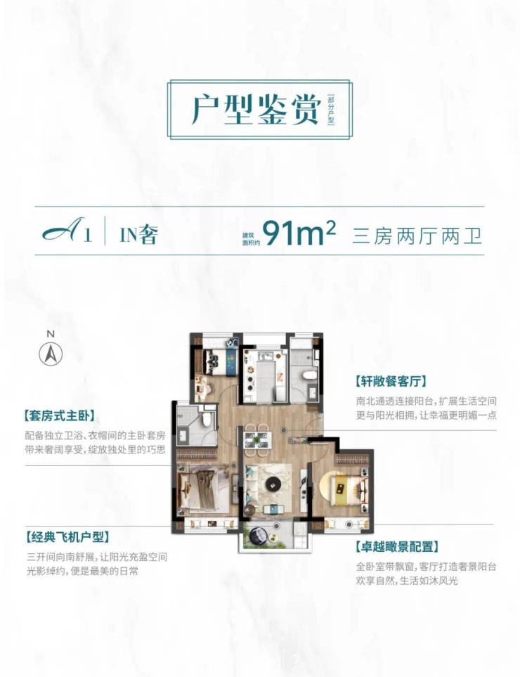 项目建面约91㎡洋房不仅实现3房功能性,还有2卫配置,在降低总价门槛的同时让自住客户实现一步到位,让资产配置客户未来在二手市场形成降维打击的优势!