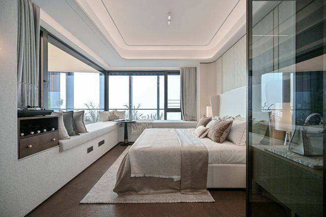 同时配备更多飘窗,尤其是主卧 C字型全景飘窗 ,整体飘窗赠送面积约 11.5㎡ ,比常规户型多出约2㎡。