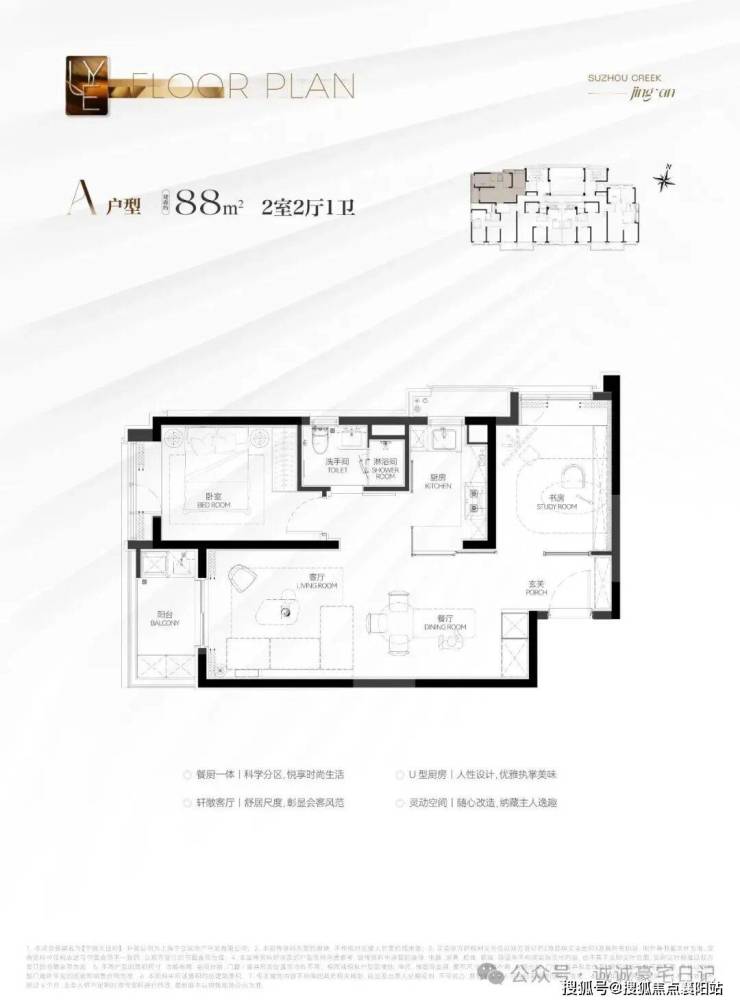 建面约88㎡2房户型
