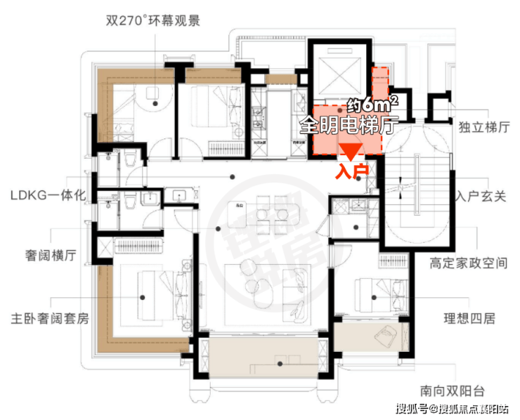 像独梯入户搭配约6㎡的全明电梯厅 。