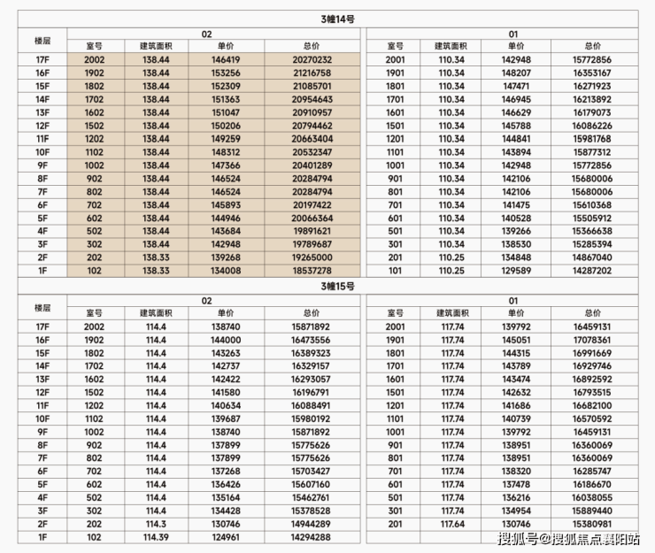 从一房一价表来看,3幢楼15单元的房源,产品更显得诚意十足。