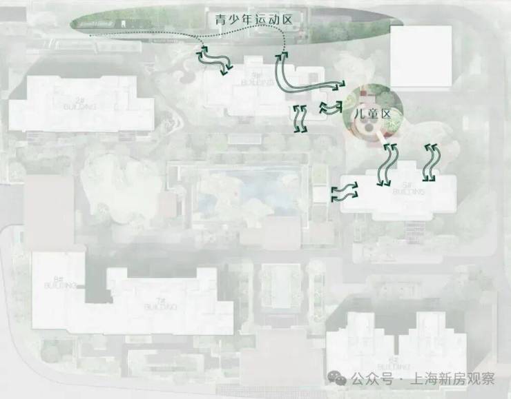 约900㎡的儿童乐园IP, 无界联动,功能互通; 室内外无界渗透,青少年运动场、宅间花园、儿童乐园与架空层的无界联动体系,打造无界交流共享空间 , 弱化交界面,室内外共享 , 形成园区功能互通;从儿童到青少年到成年人的全龄无界互通。