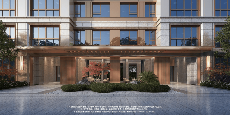 海派建筑立面 :外立面采用进口花岗岩 + 香槟金铝板,三段式经典建筑风格,历久弥新,兼具现代感与海派韵味。