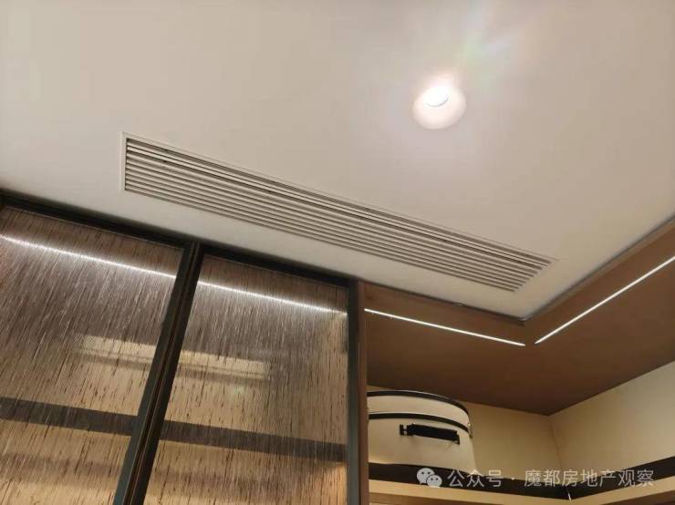 最明显的一点就是除了客厅、卧室之外,你在 厨房、卫生间、衣帽间 等几乎所有空间都可以看到有出风口,