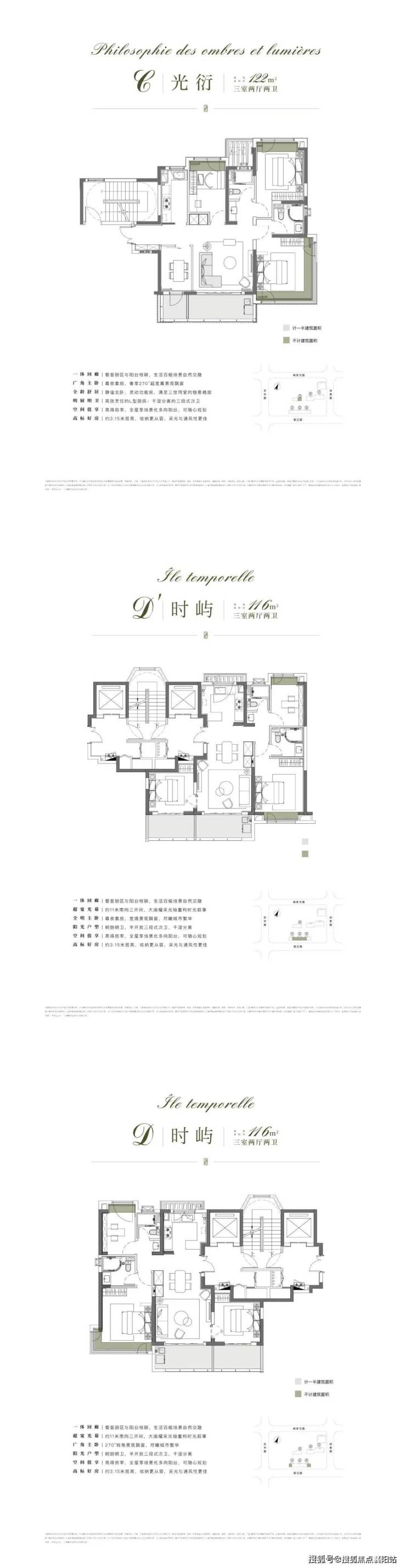(一)建面约 116㎡三房两厅两卫:改善入门首选