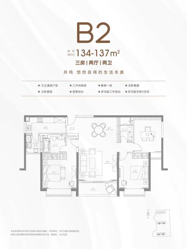 建面约134-137㎡3房2厅2卫▼