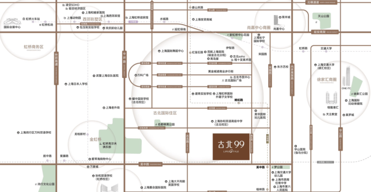 【古北99】 地处金虹桥板块。金虹桥板块站位“金钥匙”闵行,紧靠徐汇、长宁等老牌豪宅区,北邻长宁天山板块,南接漕河泾高新技术开发区,西紧靠大虹桥。“金钥匙芯”非金虹桥莫属。